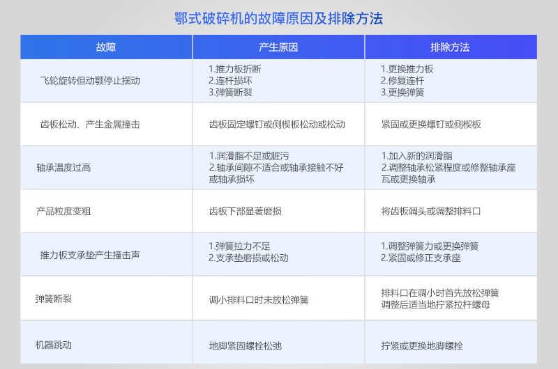 除了使用保養(yǎng)外,面對顎式破碎機(jī)的一些常見故障,我們也應(yīng)該有應(yīng)對的辦法。下面這些顎破故障及方法建議收藏。