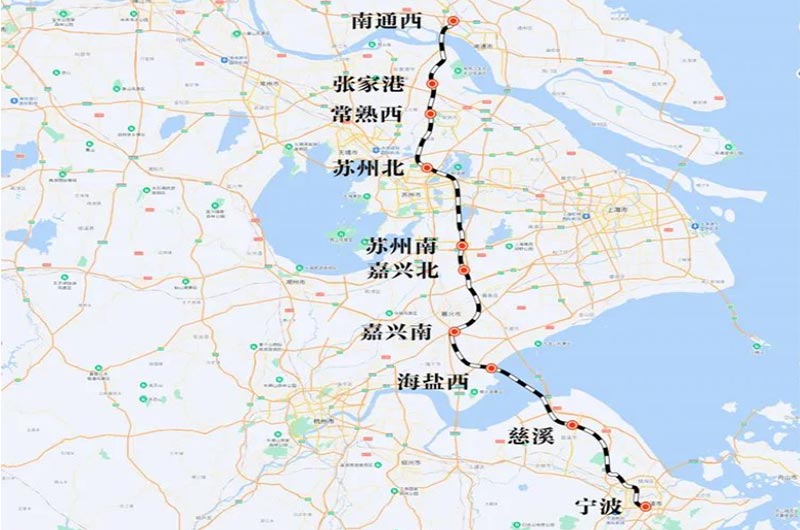 通蘇嘉甬鐵路正線運(yùn)營(yíng)長(zhǎng)度310.113公里,其中新建線路300.638公里,設(shè)計(jì)時(shí)速350公里,全線估算投資1080.9億元。其中,浙江段新建線路長(zhǎng)度165.914公里,跨海大橋長(zhǎng)29.162公里。通蘇嘉甬鐵路設(shè)計(jì)時(shí)速350公里,預(yù)計(jì)工期5年。全線設(shè)南通西、張家港、常熟西、蘇州北、蘇州南、嘉善北、嘉興南、海鹽、慈溪、莊橋等10座車站。