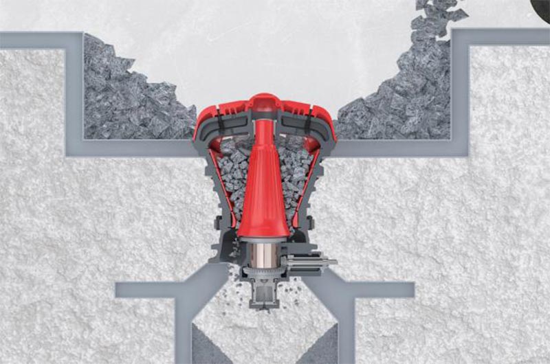 設(shè)備的產(chǎn)能關(guān)鍵是在于設(shè)備的腔型設(shè)計(jì),HCG旋回破擁有精細(xì)的破碎腔設(shè)計(jì),來確保更強(qiáng)生產(chǎn)能力、更大的進(jìn)料粒度及更長(zhǎng)的襯板壽命;采用了大傾角和長(zhǎng)破碎面設(shè)計(jì),配合優(yōu)化設(shè)計(jì)的沖程和轉(zhuǎn)速,使破碎機(jī)具有強(qiáng)大的破碎能力,可以用于各種粗碎破碎作業(yè)需求,適用于更大的進(jìn)料需求,破碎性能更佳。