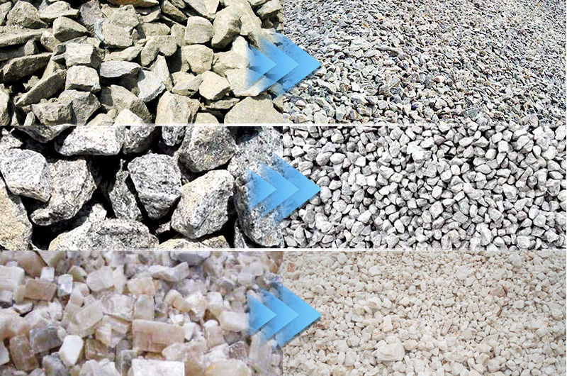 該設(shè)備可處理抗壓強度≤160MPa的物料,包括河卵石、花崗巖、煤矸石、建筑垃圾等,廣泛應(yīng)用于: