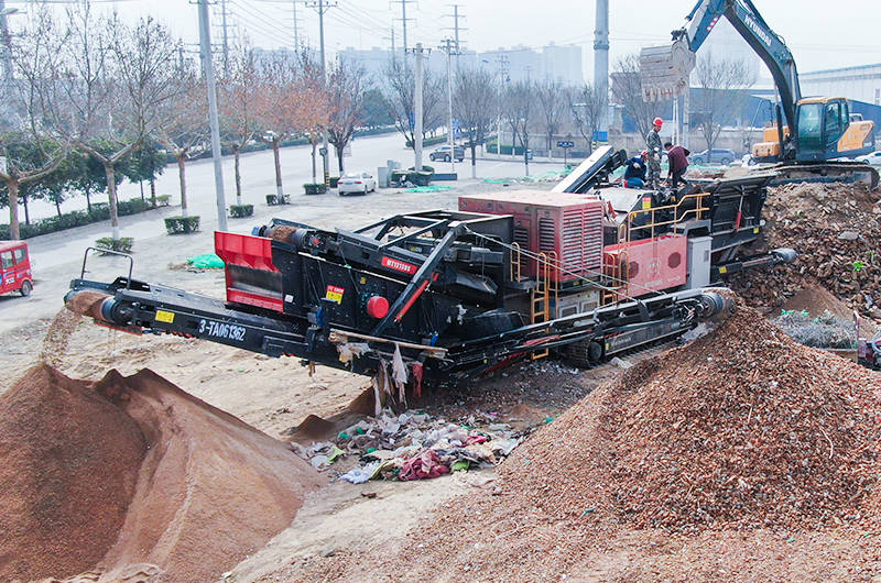 (紅星履帶移動(dòng)破碎篩分站處理建筑垃圾項(xiàng)目現(xiàn)場(chǎng))