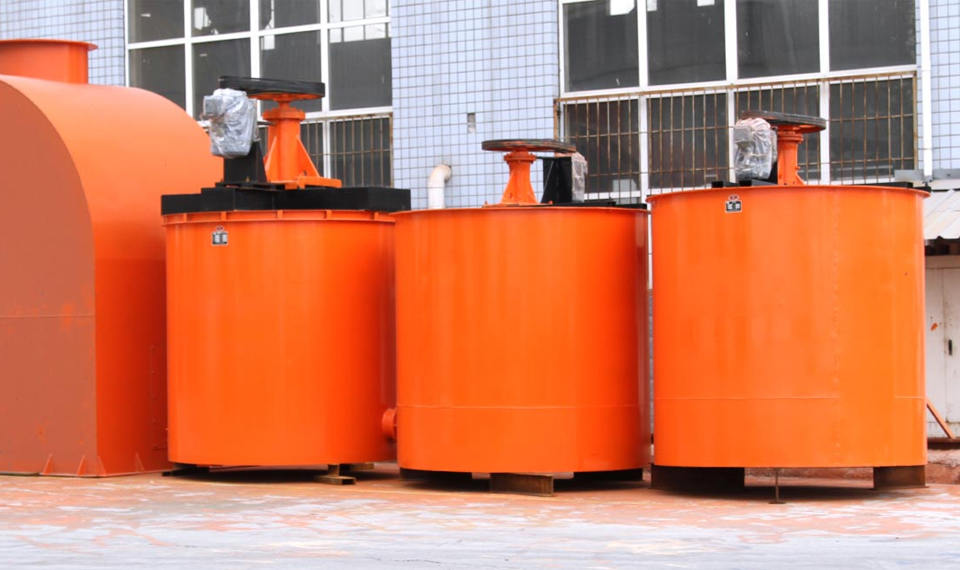 該攪拌桶是由電動(dòng)機(jī)三角帶傳動(dòng)帶動(dòng)葉輪旋轉(zhuǎn),將藥物和礦漿充分 混合均勻,增加藥劑作用反應(yīng)時(shí)間強(qiáng)化藥物反應(yīng)質(zhì)量的必要設(shè)備,本 機(jī)適用于選礦業(yè),也可用作各種化工的配料攪拌。